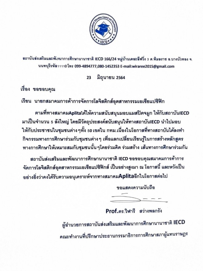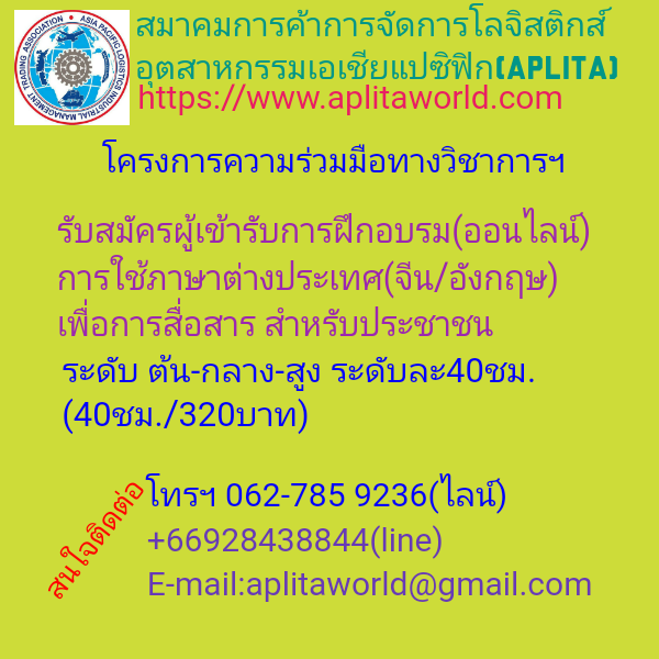 นายกสมาคมการค้าการจัดการโลจิสติกส์อุตสาหกรรมเอเชียแปซิฟิกและนายกสมาคมการค้านักธุรกิจสากล ได้ลงนามร่วมกัน ในโครงการความร่วมมือทางวิชาการเพิ่อพัฒนาทรัพยากรมนุษย์ ภาค การฝึกอบรมการใช้ภาษาต่างประเทศเพื่อการสื่อสารของประชาชน
