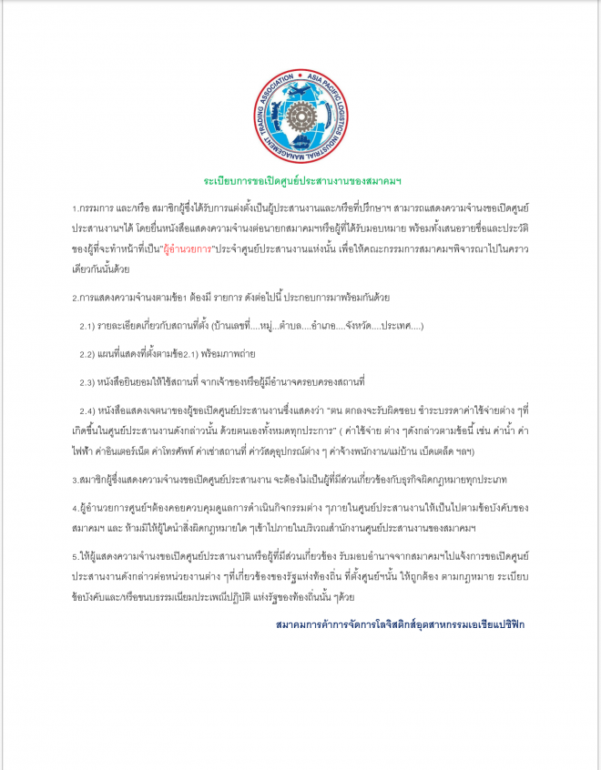 2/2/64 ประกาศ ระเบียบสมาคมว่าด้วย"การขอเปิดศููนย์์ประสานงาน"