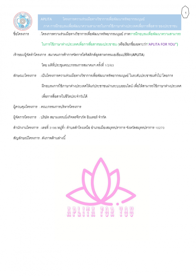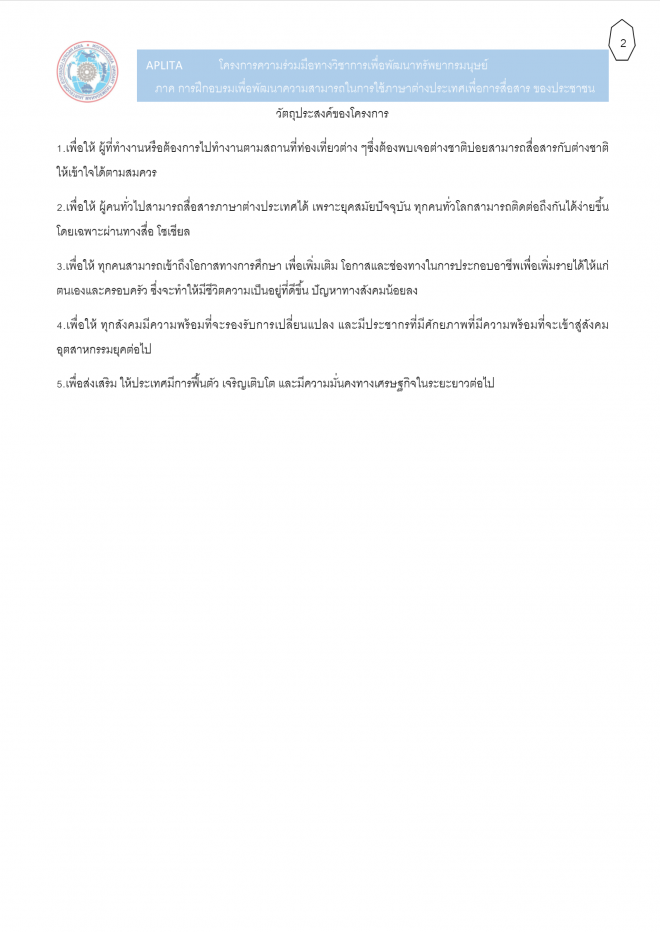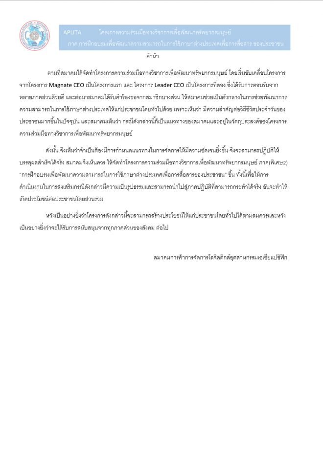 >> โครงการความร่วมมือทางวิชาการเพื่อพัฒนาทรัพยากรมนุษย์(โครงการที่3"APLITA FOR YOU")